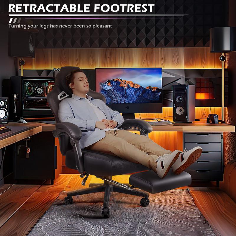 ·[Optimized Seating] - Wider for more freedom of seating; thicker for a softer, more durable feel. No Flank Design for Compatibility with Various Body Types. You can use the gaming chairs with retractable footrest and reclining function to find a comfortable sleeping position