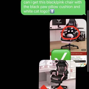 I came across the black/pink chair with the cat paw and white cat design which is the design and color i originally wanted. They were able to send out the chair i wanted and im truly grateful! Beautiful chair and amazing customer service!