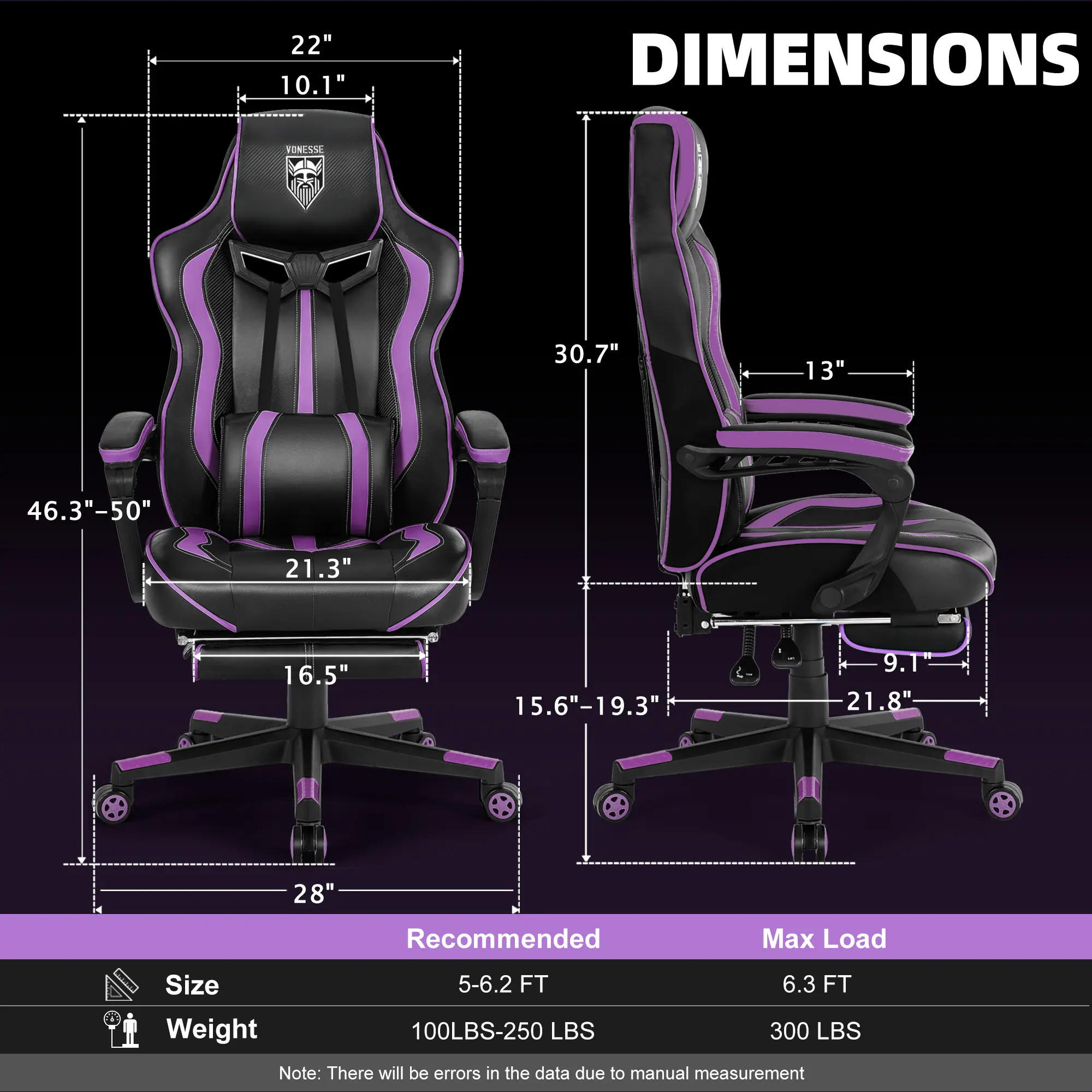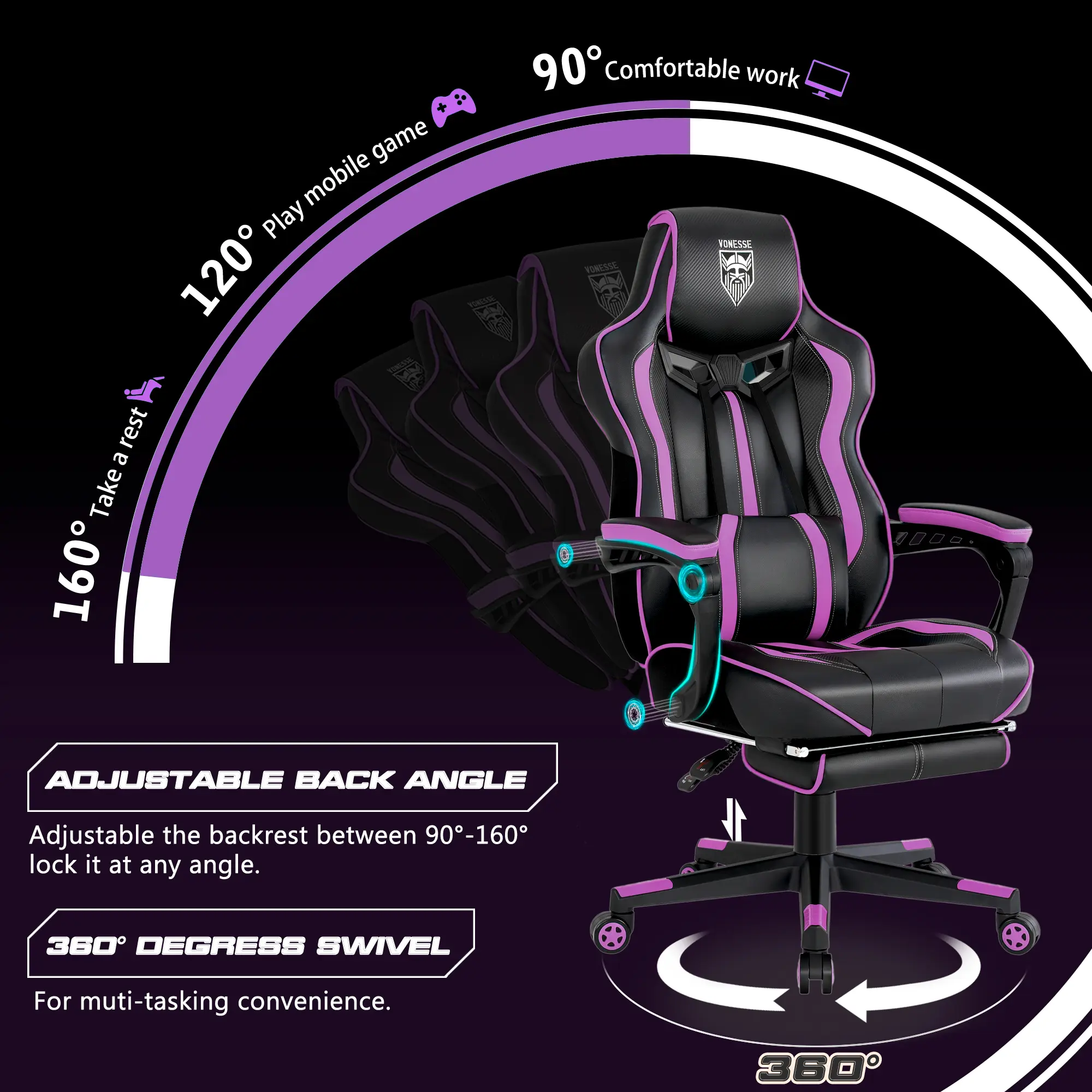 Purple&Black, Weight up to 300 lbs with massage function