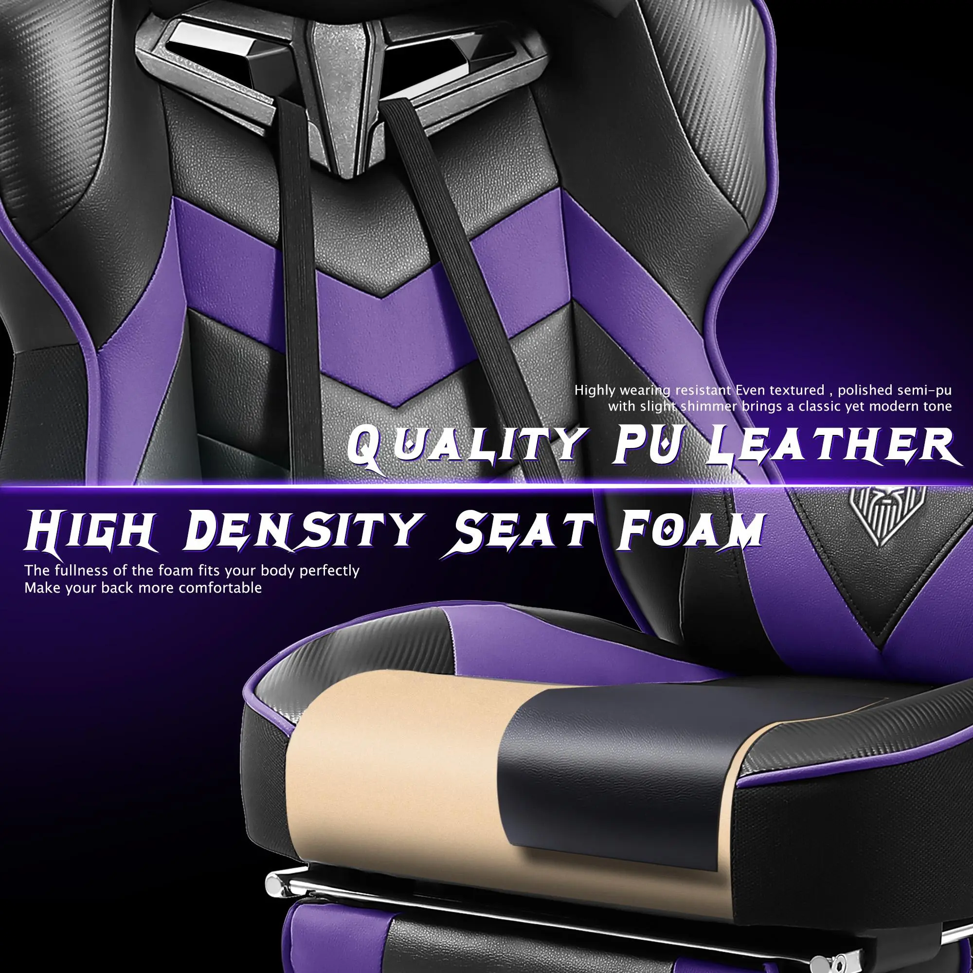 Great material leather, good color options, comfortable, reclines, locks in place, pull out foot rest, easy to put together, good directions, all tools included, good casters, spins well, built in speakers in the head rest cushion, lumbar cushion ... Zeanus couldn't be happier ! 👍👍