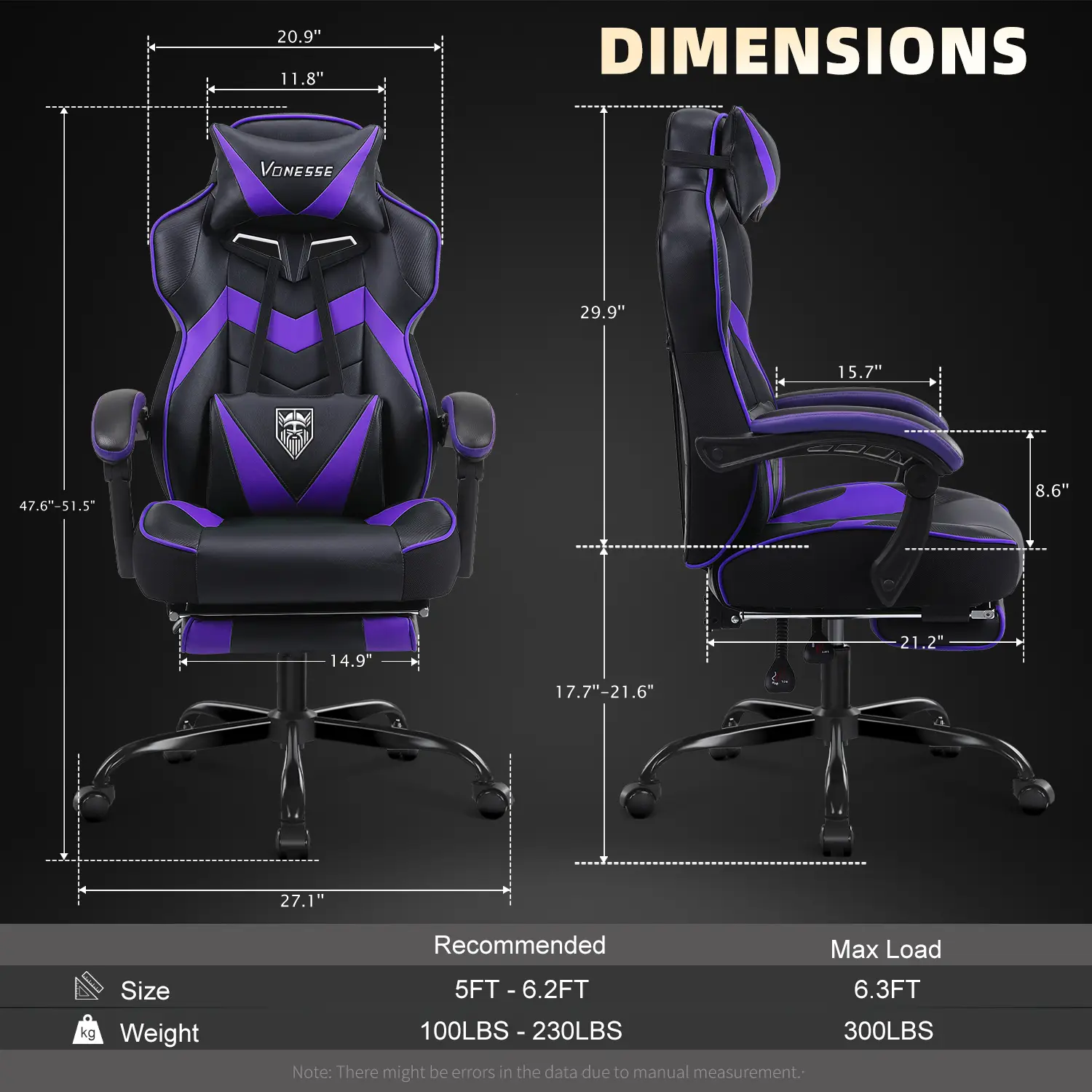 Purple & Black, Weight up to 300 lbs with massage function