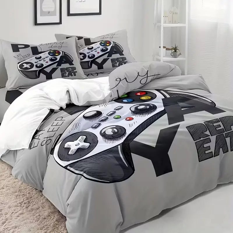 3-Piece Gaming Controller Bedding Set, Breathable Polyester, Zippered Closure, Digital Print, Soft Material, Dorm Decor