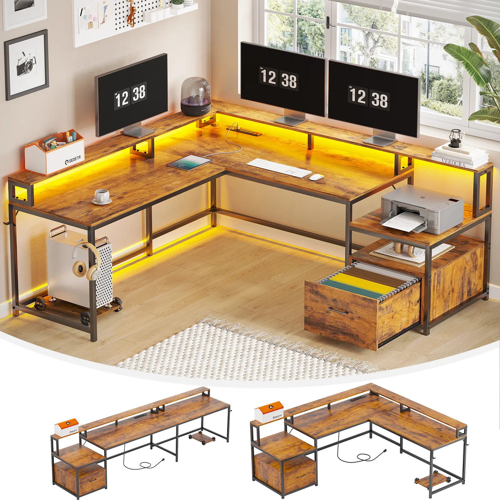 The desk itself could have better material but overall pretty sturdy and led lights are lotus lantern not a cheap knockoff. The drawer is REALLY loud tho and a bit loose, but overall really good for the price. Definitely have someone help you put it together, a lot of pieces. It comes with the tools, I only needed the tools it came with.