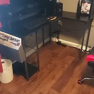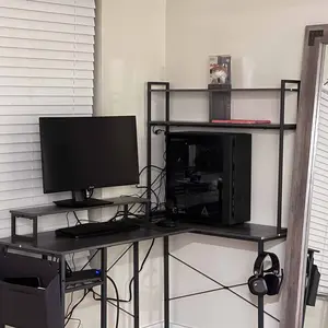 Our Small Gaming l shaped desk features 3 AC outlets + 2 USB charging ports to provide power for up to 5 devices simultaneously. Easily charge your computer, ps4, smart phone, power bank or gaming gear. don't need to put additional power strips on the tabletop, providing great convenience for gaming or home office.