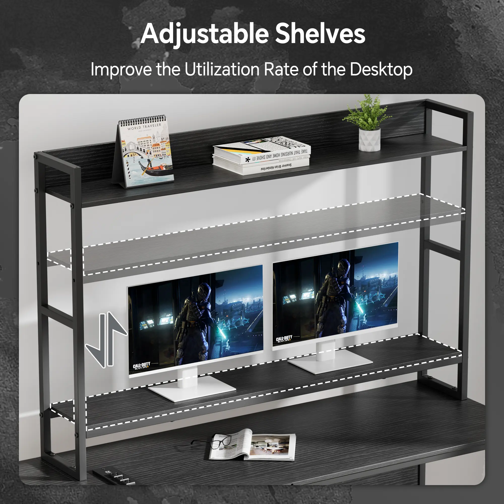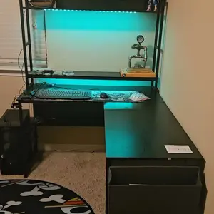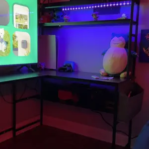 ·Computer Desk with Storage: Come with 2-tier storage shelves, bottom bookshelf and side storage shelf, the l desk for gaming solves your problem with the mess of your desktop. The 2-tier storage shelves can also use as a monitor stand, staying in the correct neck-friendly posture to protect your cervical and spinal health while gaming/working.