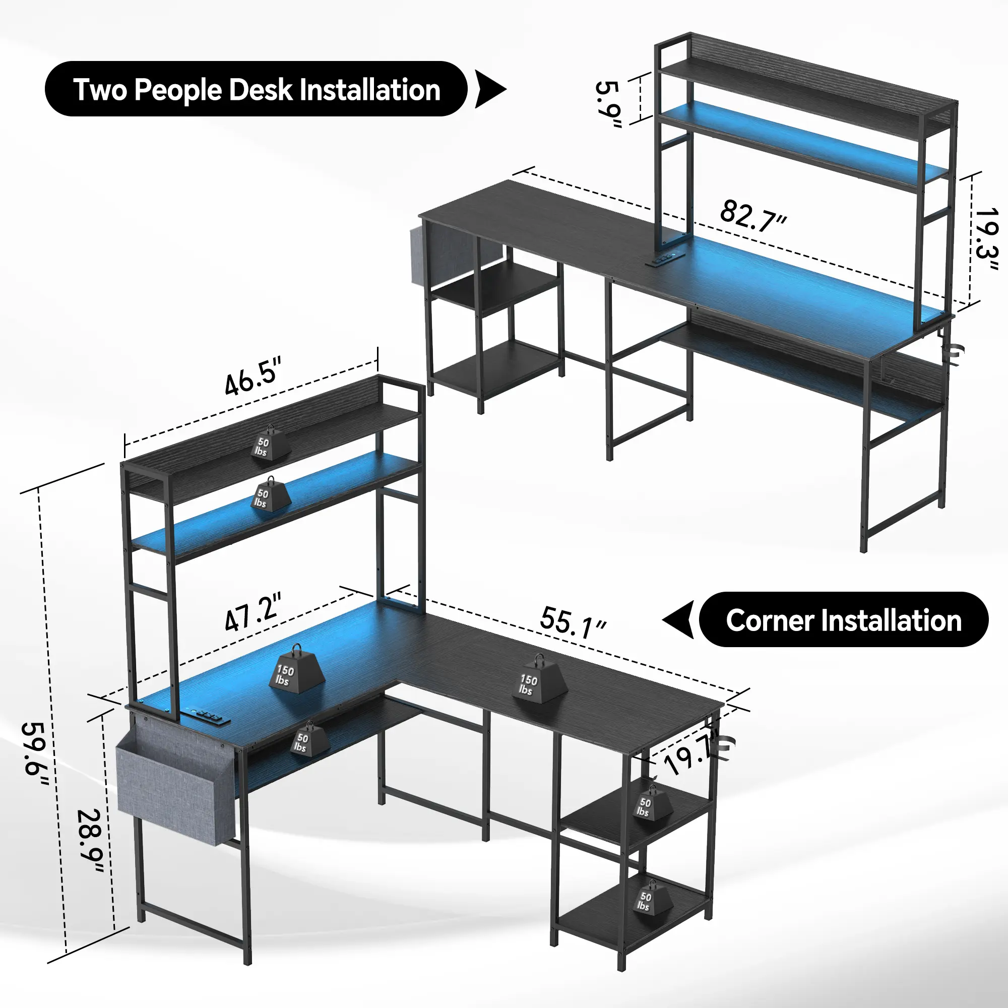 ·Reversible Desk: 4 Assembly methods of the l shaped computer desk could choose as you need. L Shaped desk is perfect for tucking into a corner to max your space. The two-person desk can hold two-person studying or writing no interference. And the top hutch can place left or right for your needs.