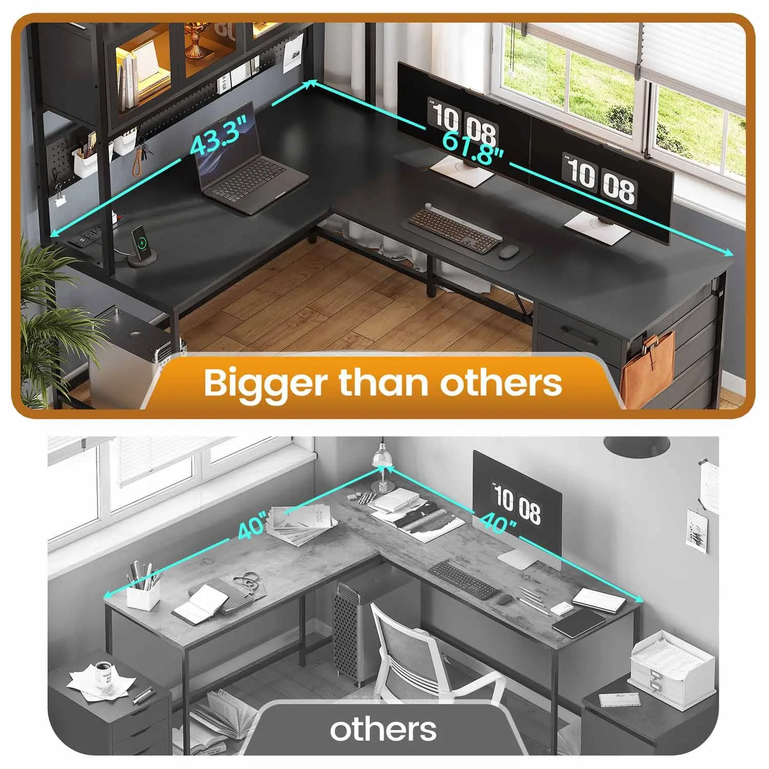Sikaic L Shaped Desk with Hutch & Power Outlets