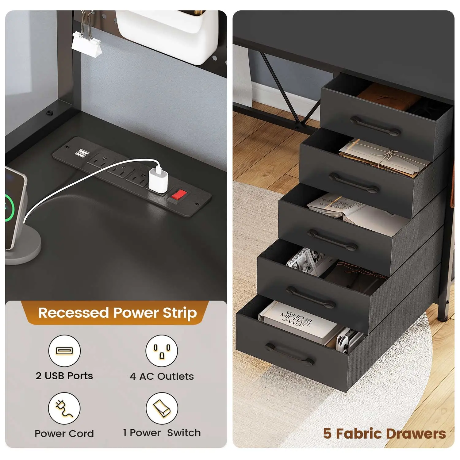 The home office desks are equipped with 4 AC power sockets, 2 USB ports, and 1 main power switch, which can support the charging of 6 devices at the same time. It can cut off the power supply with one click, making it safe and durable.