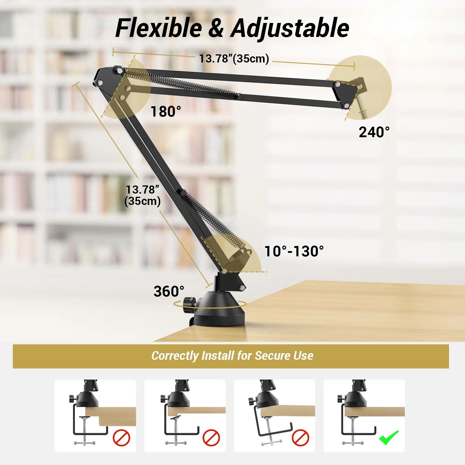 ·Threads: Compatible with boom arms (3/8-inch and 5/8-inch)