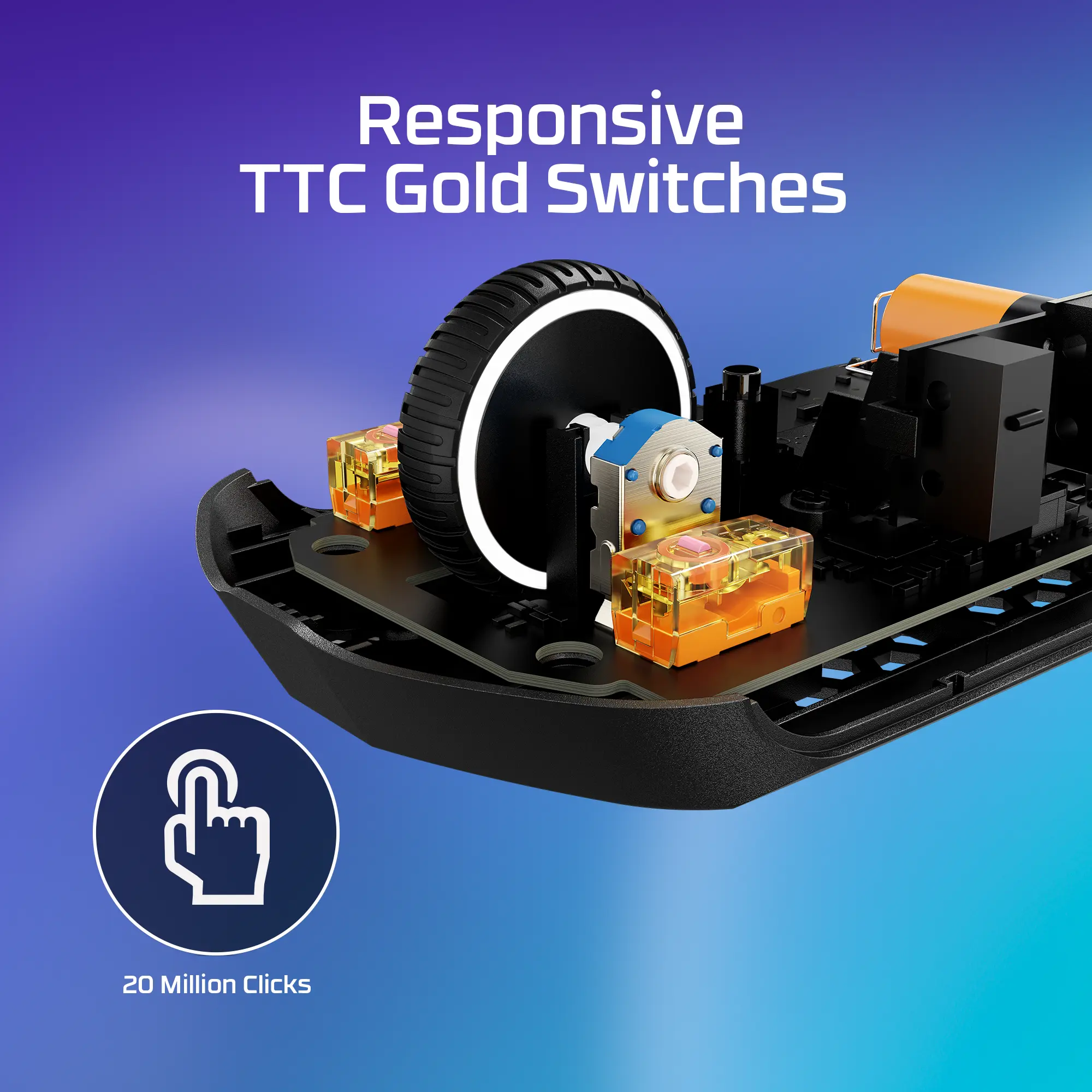 The Pulsefire Haste 2 Core Wireless uses durable and tactile TTC Gold switches rated for up to 20 million clicks.