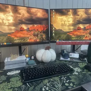 Really good quality desk mat ☺️ Hard to find cute mats that fit my always changing desk esthetic! This fits in perfectly and is a great price for the size and quality- found the saw exact mat on Etsy for double the $ 💀