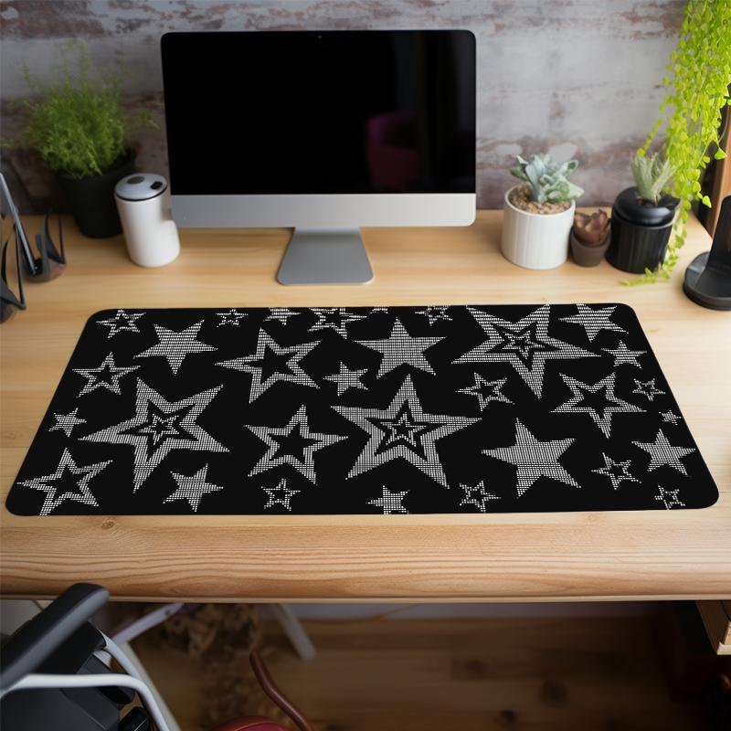 Star Pattern Mouse Pad, Rectangle Gaming Mouse Pad, Non-slip Rubber Base Stitched Edge Desk Pad, Decorative Desk Keyboard Mat for Home Office Game, Gift for Girl Teen, Desk Accessories