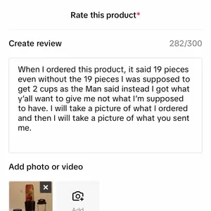 When I ordered this product, it said 19 pieces even without the 19 pieces I was supposed to get 2 cups as the Man said instead I got what y’all want to give me not what I’m supposed to have. I will take a picture of what I ordered and then I will take a picture of what you sent me.
