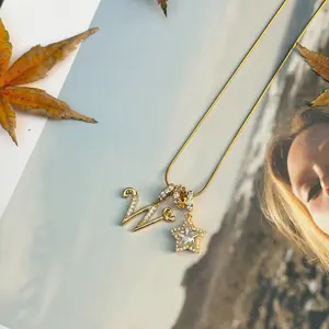 Experience the elegance and charm of the GANIA Delicate Gold-Tone 26 Initial Letters Pendant with Star Charm.