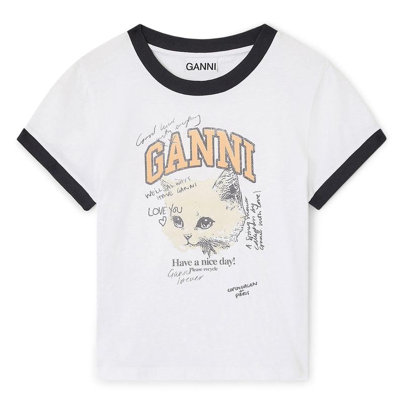 5. GANNI Cropped Kitty T-shirt (Bright White)