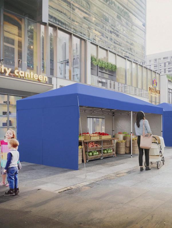 [Easy Setup]The 10x20 pop-up canopy can be quickly set up and taken down by 2-3 people in minutes without the need for tools, accommodating 15-20 individuals with ease. Simply remove the fully assembled frame from the bag, place the fabric on top, extend the legs, and you're all set.