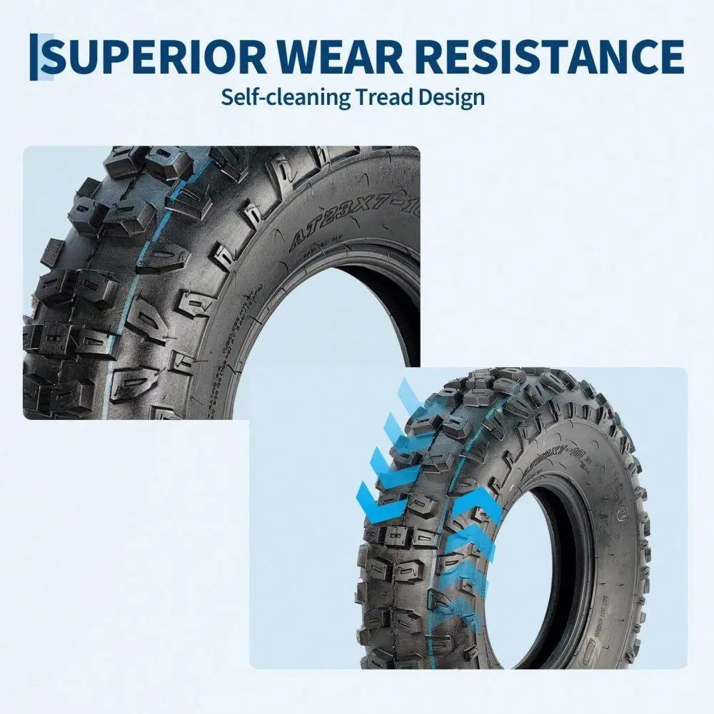 Durability & Toughness: These 23x7-10 heavy-duty ATV tires feature a robust 4-ply tubeless design, engineered to withstand punctures, cuts, and impacts. Perfect for 4 wheeler tires and quad tires tackling mud trails and rough terrain with lasting strength