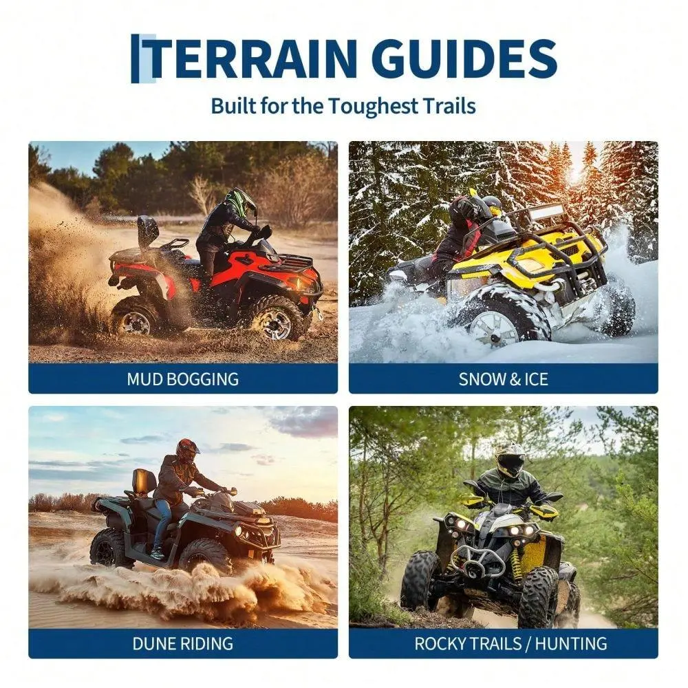 All-Terrain Performance: Engineered for versatility, these 23x7x10 ATV tires excel on mud trails, snow, sand, and rough paths. Perfect for side-by-side UTVs, quads, and four wheelers seeking dependable traction and durability year-round