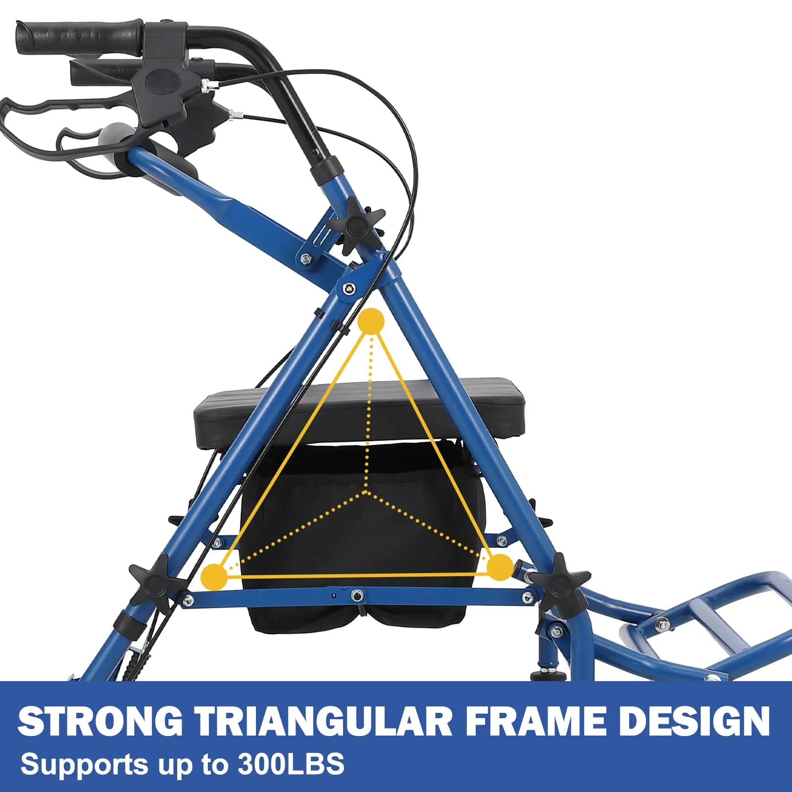 Ensure Your Safety: Featuring a strong and reinforced triangular structure frame and responsive braking system, it can support up to 300 pounds. Seniors can traverse a variety of landscapes and relax in comfort without worrying about safety