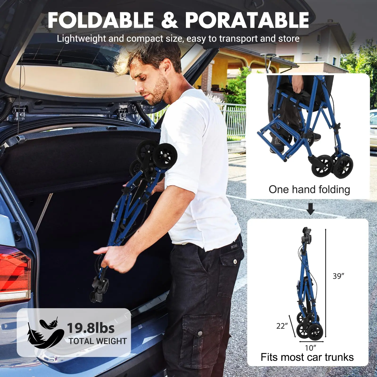 Easy to Store and Carry: Easily folds into a compact size with one hand for easy storage and carrying, and can easily be transported in the trunk of your car. Folded size: 10”W*39”H*22”L, Weight:19.8lbs