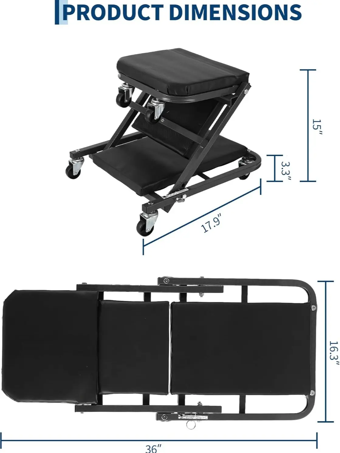 5. 36-inch Z-Creeper Seat with Wheels, 2-in-1 Folding Garage Seat, 330 lb Capacity, Under-Car Automotive Mechanic Repair with 6 Swivel Casters