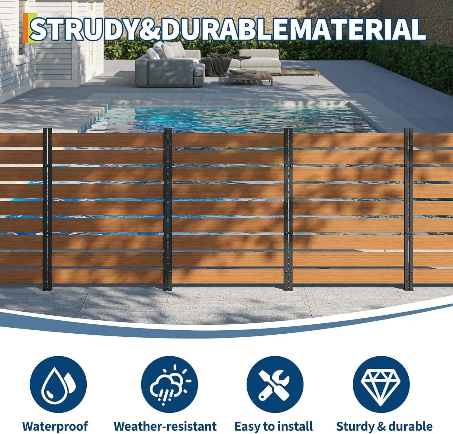 2,QUICK & EASY ASSEMBLY IN ABOUT 45 MINUTES:Enjoy a hassle-free setup with our straightforward assembly process. You can have your privacy screen fully assembled and ready for installation in approximately 45 minutes. All necessary hardware is included, making the initial build simple and efficient for anyone.