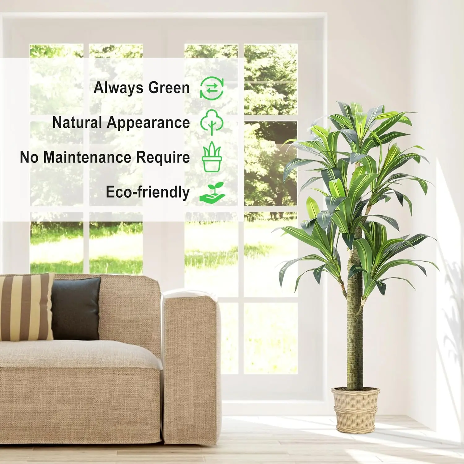 Maintenance-Free Solution: No watering or care needed! This faux Dracaena stays fresh and vibrant year-round, making it a hassle-free, cost-effective decorative choice for any room.