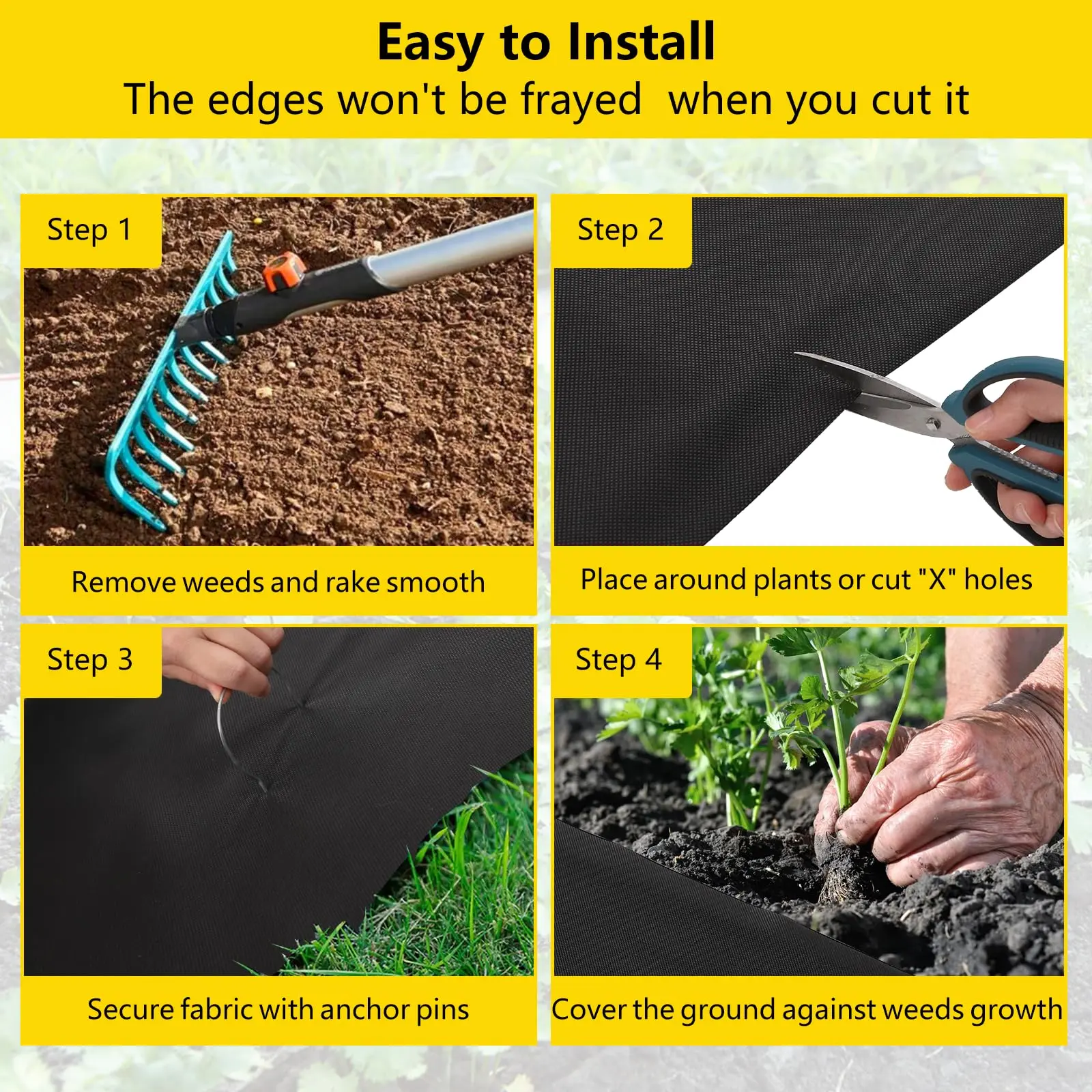 【Easy to Install】You don't have to be an expert or call in expensive professionals in order to set up the elite our weed blocking fabric, since it is light enough so that you can carry and cut it and also heavy enough to protect your garden.