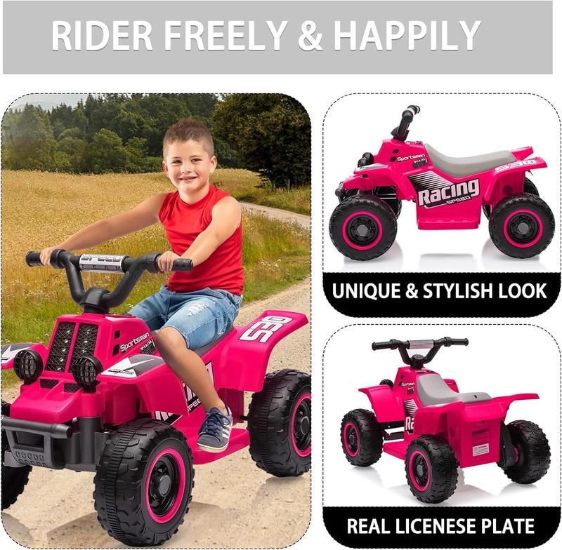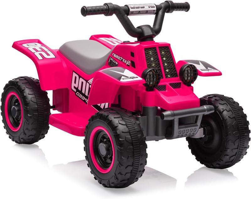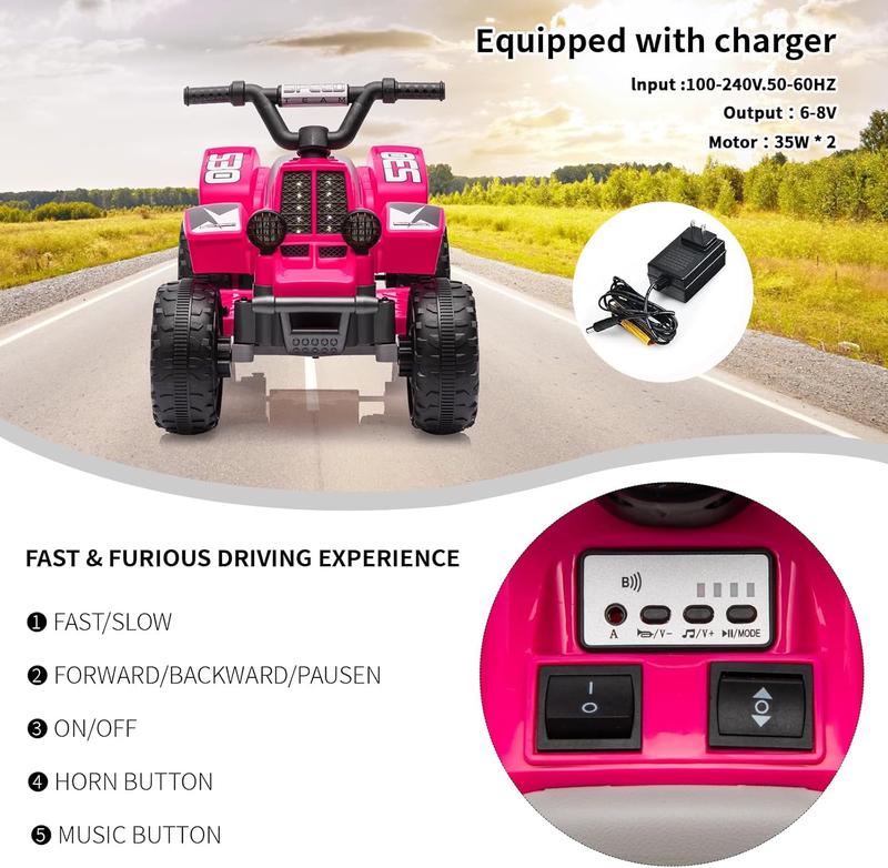 5. 6v Kids ATV Quad Ride-on Car - 2MPH, Push-Button Accelerator, Rubber Handles | Toddler Electric 4-Wheeler Toy for Boys & Girls-Rose red