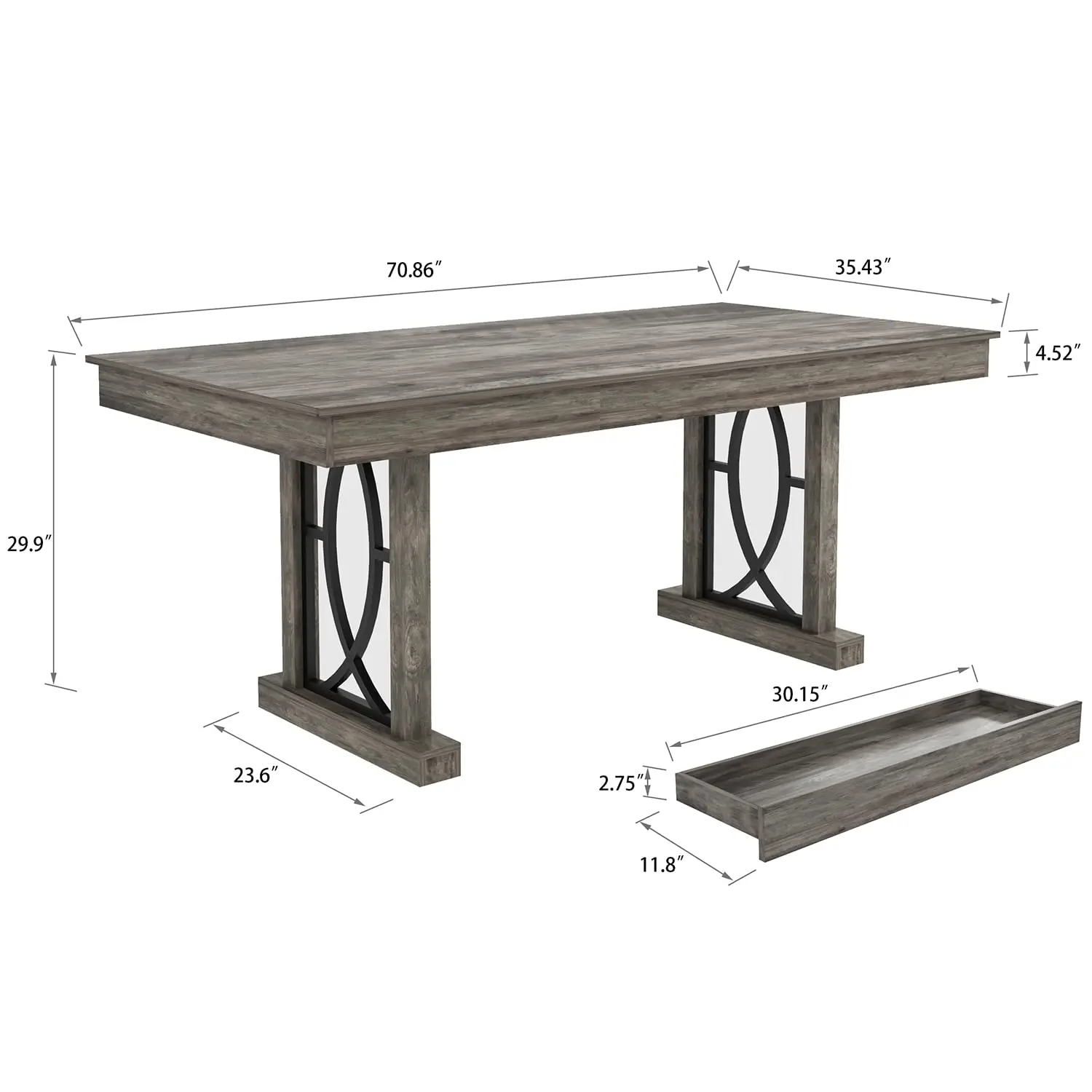 ·This 71-inch dining table features large-capacity drawers on both ends.