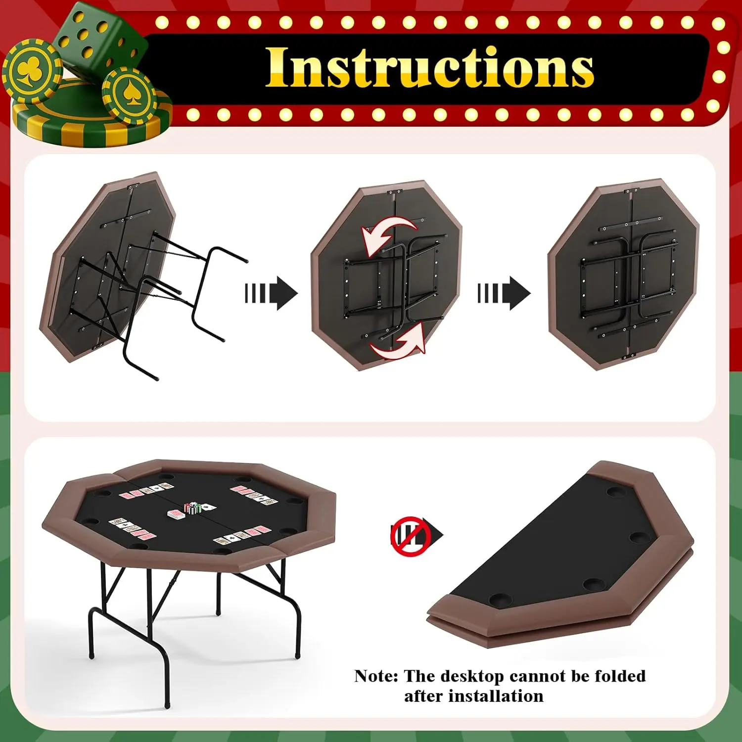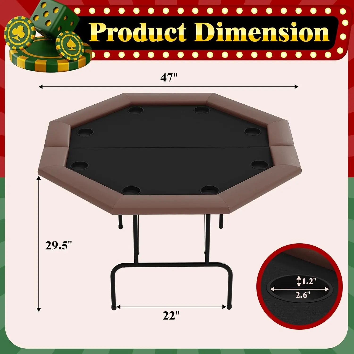 SPACIOUS 8-PERSON GAMING SURFACE: Designed with an expansive octagonal layout, this premium poker table comfortably seats up to eight players, making it ideal for lively game nights or friendly tournaments. Its generous playing area ensures ample space for cards, chips, and hands, creating an engaging atmosphere perfect for social gatherings.