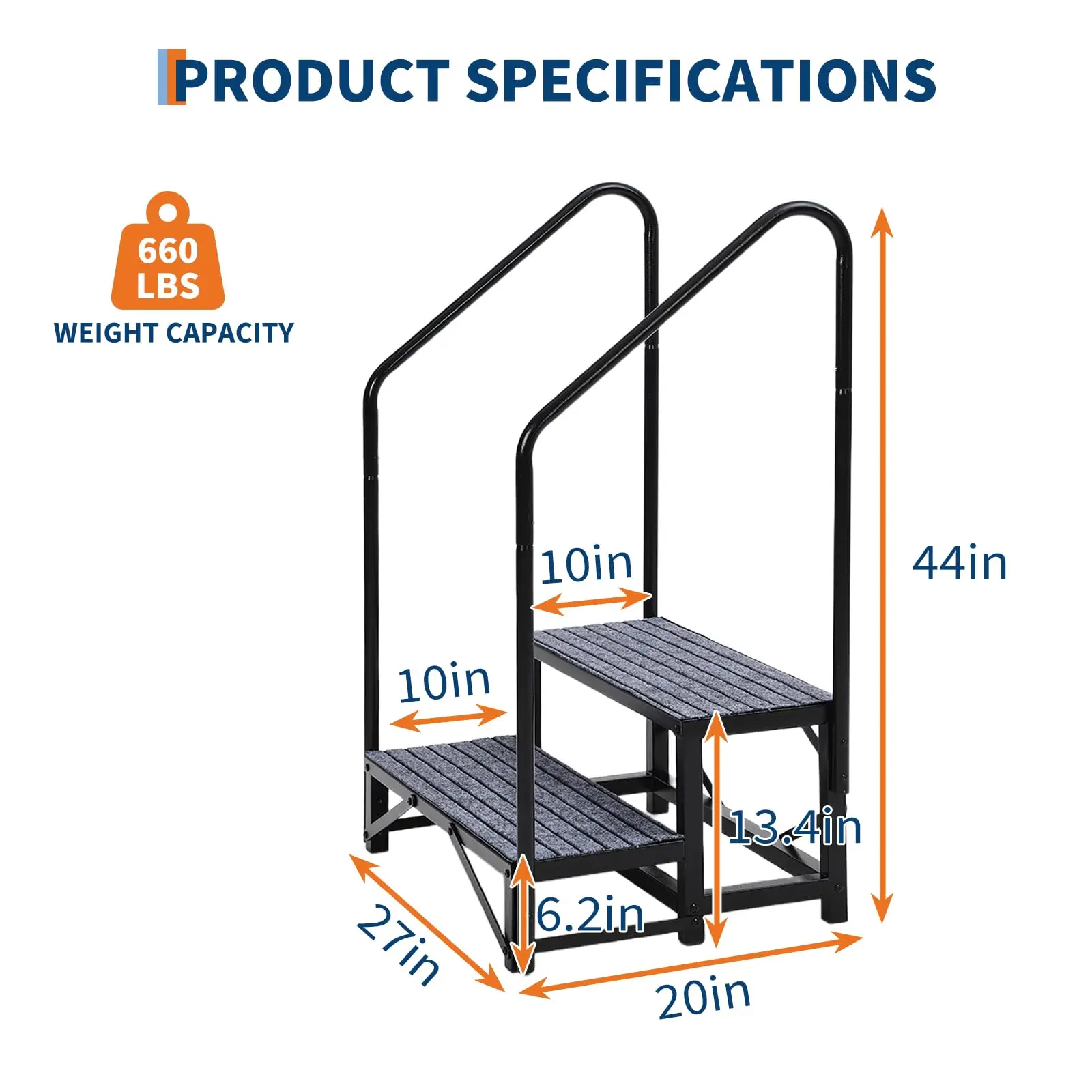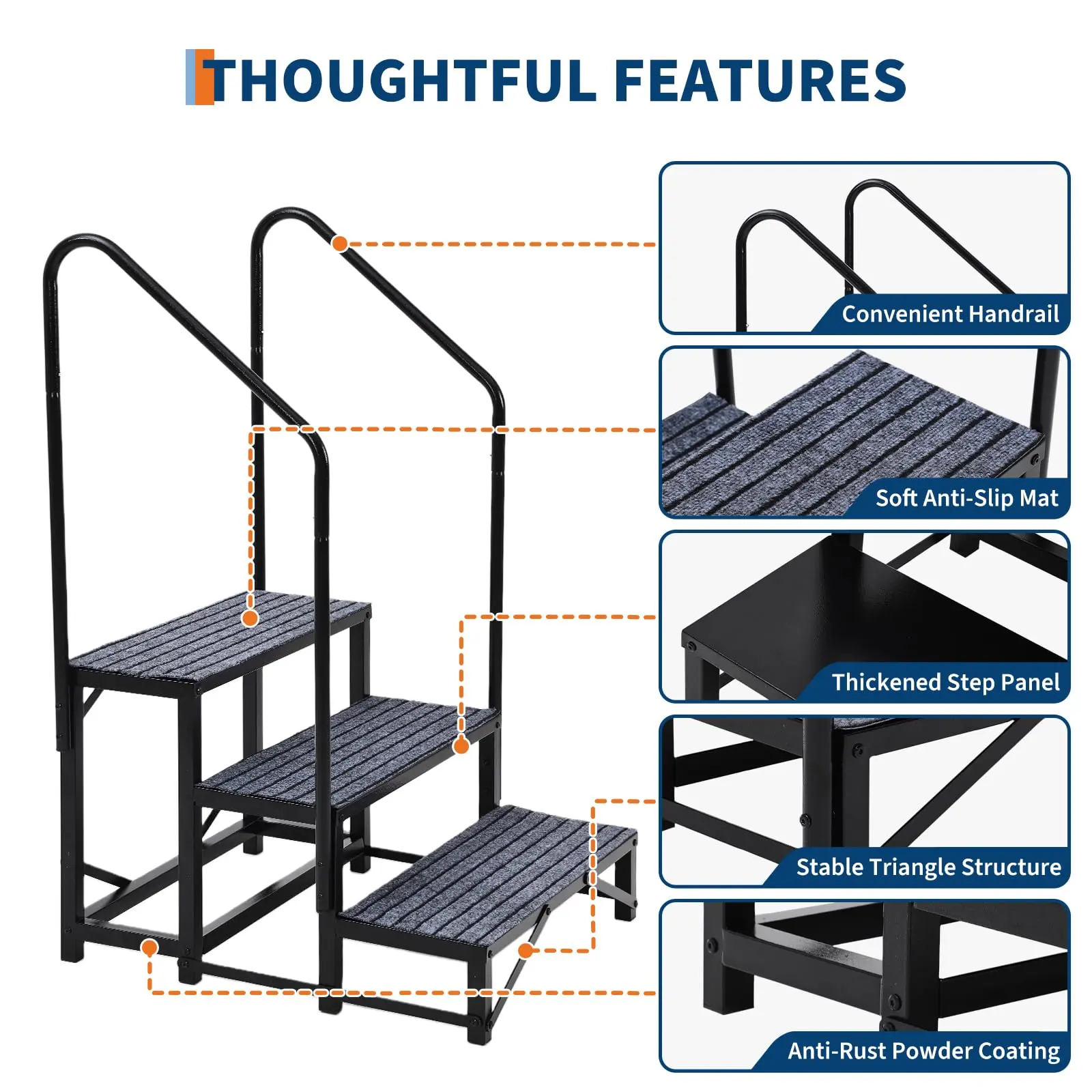 Caravan Stairs with Single Handrail Heavy Duty Motorhome Steps for Static Caravan Non-Slip Hot Tub Steps with Mats 300kg Capacity Portable Steps for Campervan Spa Outdoor Pool Pets