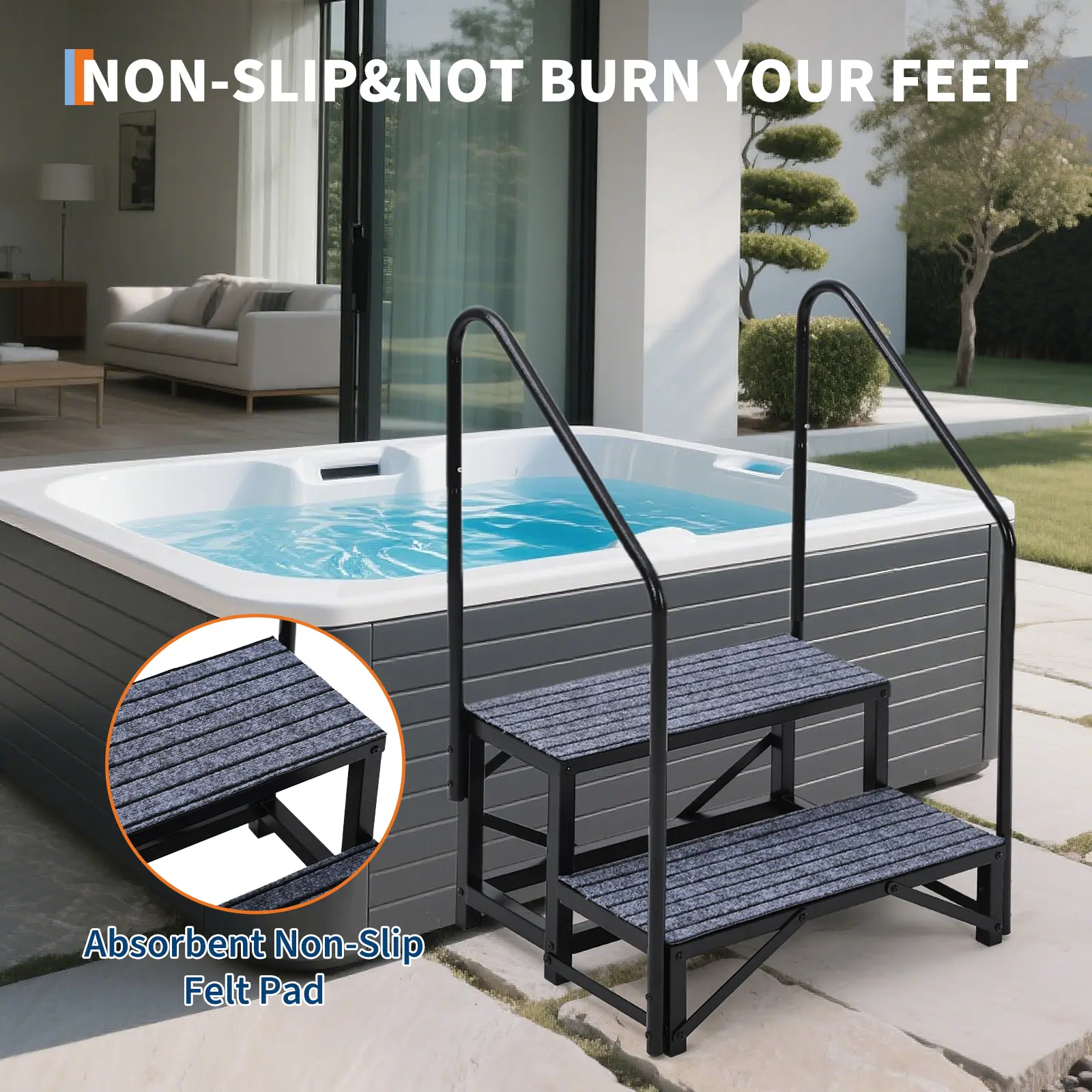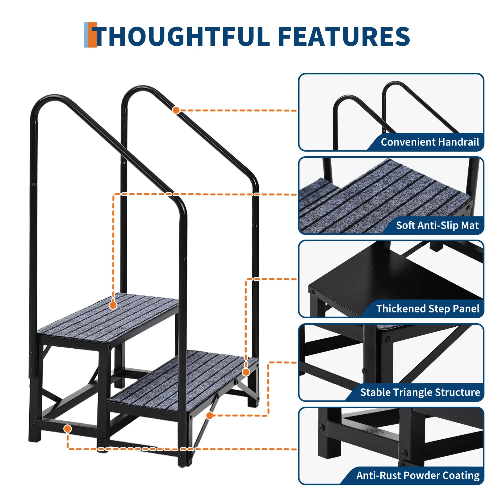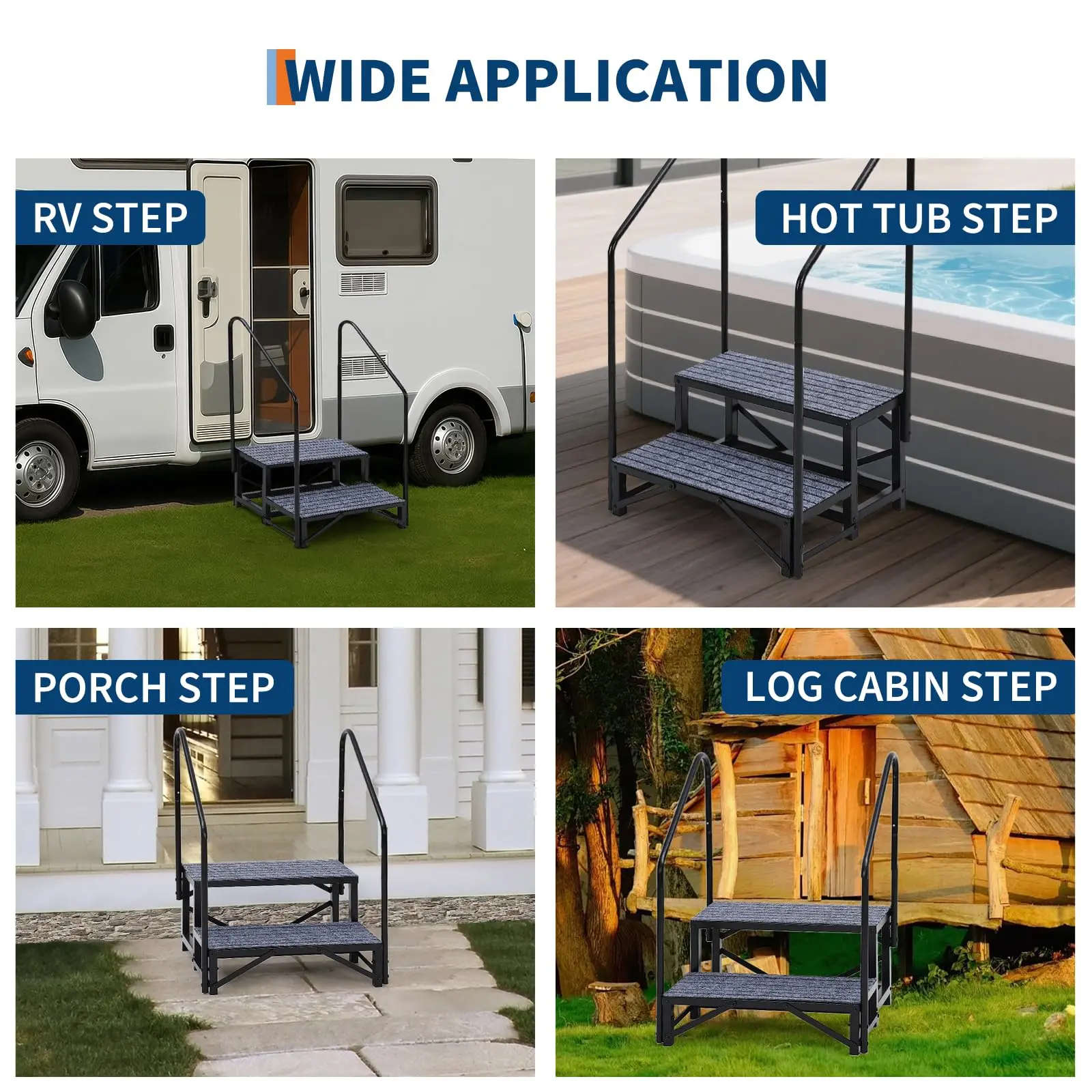 5. Caravan Stairs with Single Handrail Heavy Duty Motorhome Steps for Static Caravan Non-Slip Hot Tub Steps with Mats 300kg Capacity Portable Steps for Campervan Spa Outdoor Pool Pets