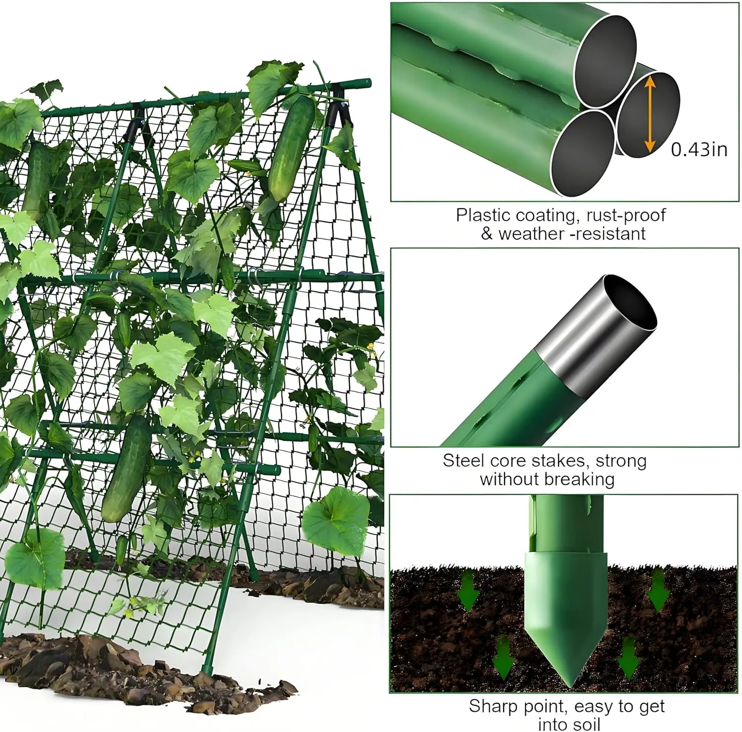 ·Dual-Sided A-Frame Design: Features an A-frame structure allowing plants to grow on both sides. This layout promotes better air circulation and sunlight exposure for climbing plants.
