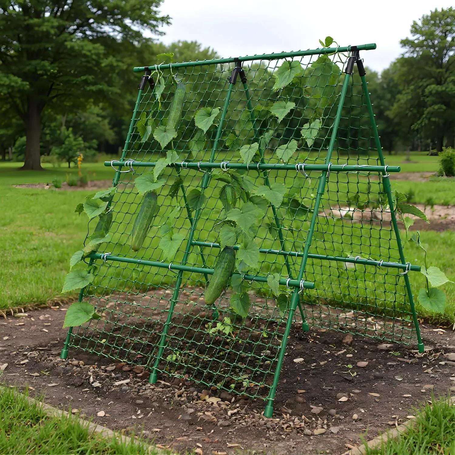 5. Cucumber Trellis, 4ft x 4ft Green Metal A-Frame Garden Trellis for Climbing Plants – Support for Cucumbers, Tomatoes, Peas, Beans, and Vines, Includes Netting, Fits Raised Beds