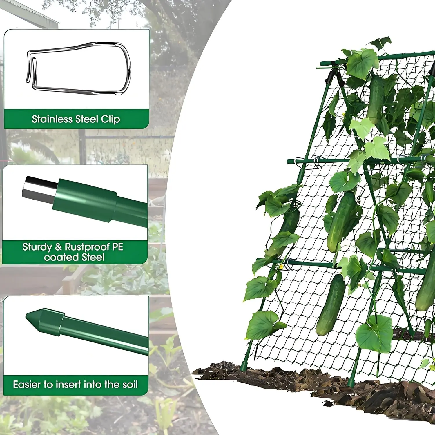 ·Includes Supportive Accessories: Comes with an attached trellis net to help catch falling fruits and vines. Also includes two adjustable plant clips for guiding and securing plants as they develop.