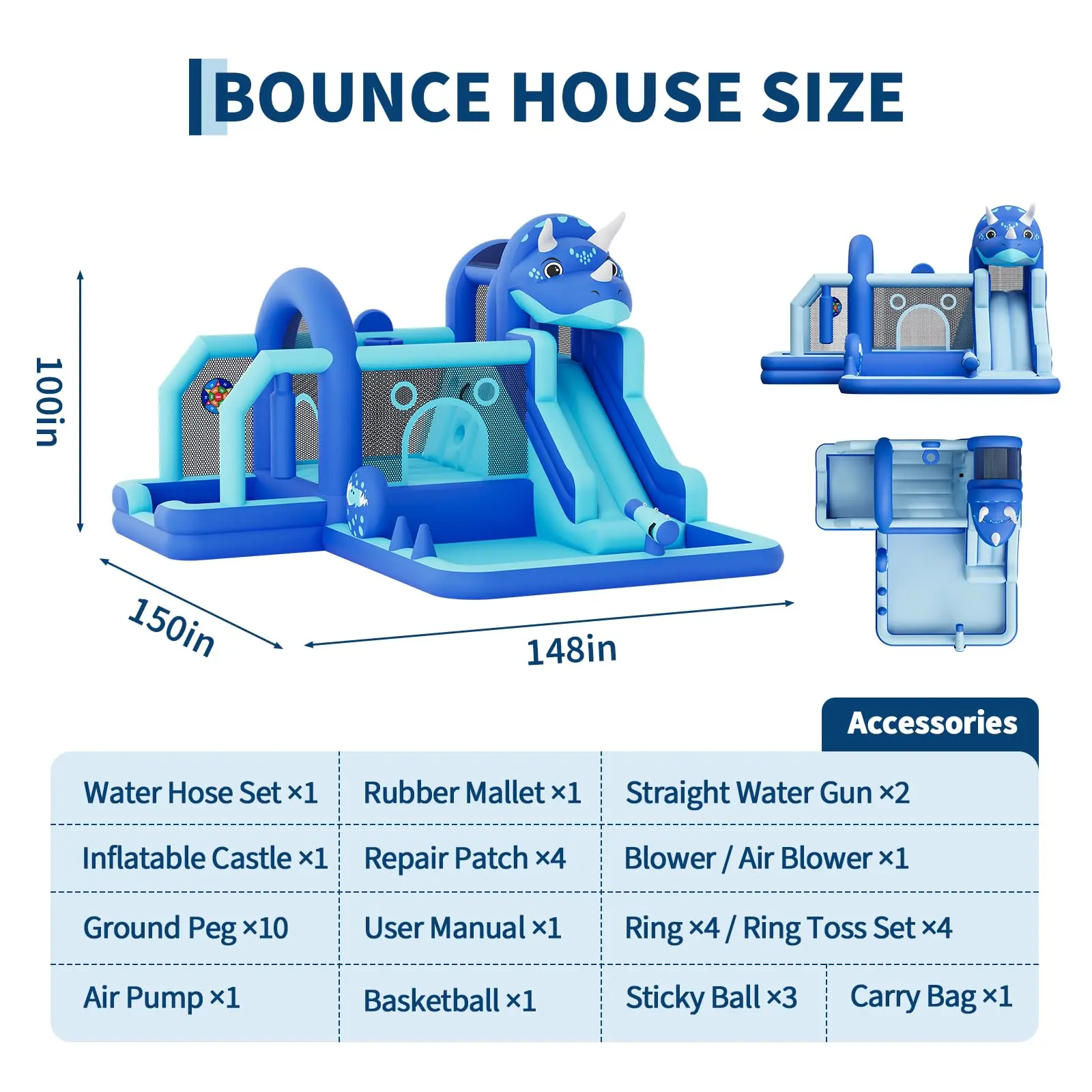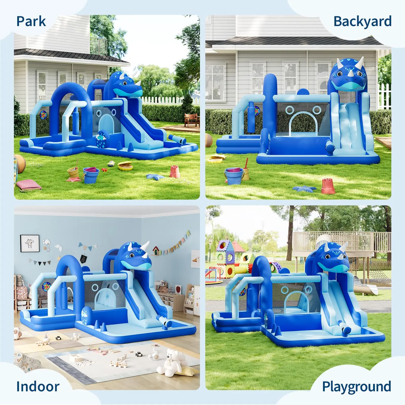 Quick Setup & Easy Storage: Inflates in under 3 minutes with the included heavy-duty air blower. Comes with repair patches, lawn stakes, and a carrying bag for easy setup, transport, and storage — perfect for your backyard or park.