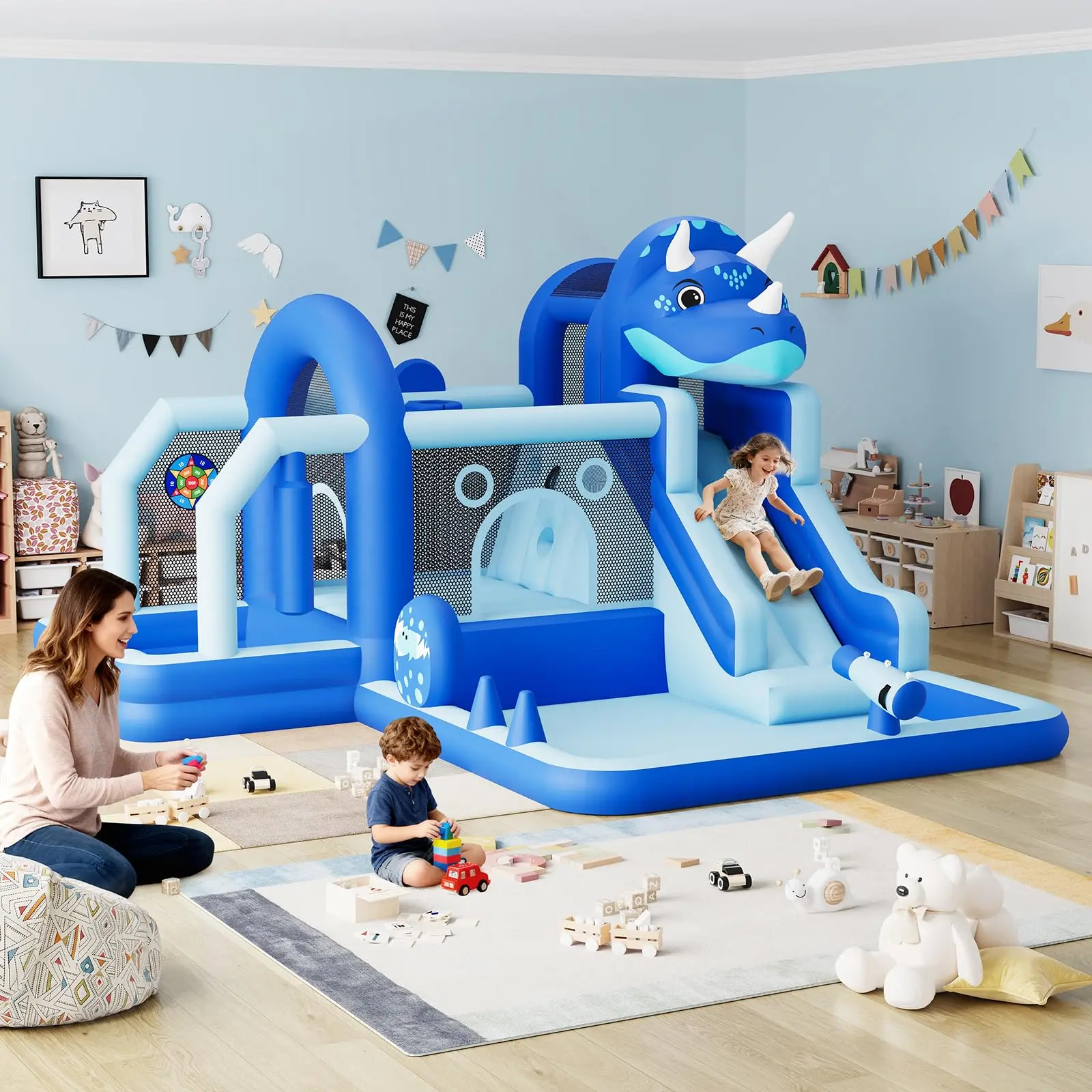 Safe & Fun Design: The bouncing area is surrounded by durable mesh walls that ensure maximum safety while allowing parents to keep an eye on their kids. The dinosaur theme design sparks imagination and encourages active play.
