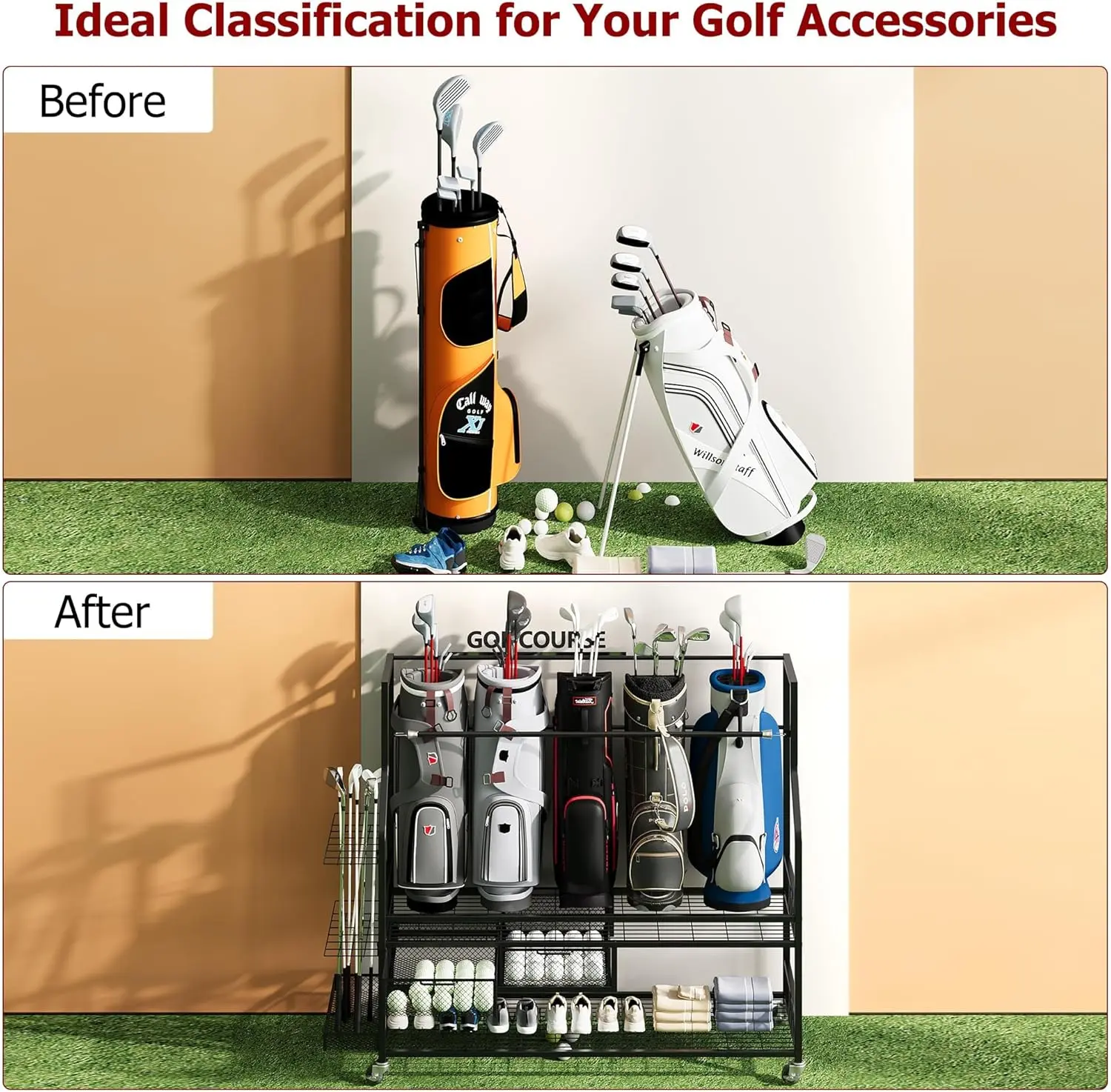 ·5. The Perfect Gift for Golf Lovers More than just an organizer, this rack is the ideal gift for any golf enthusiast. It promotes an organized routine, enhances practice sessions, and makes a great addition to any golfer's home, strengthening their passion for the game.