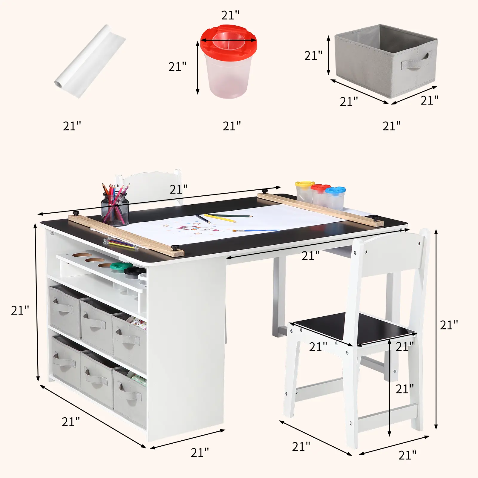 Ample Storage with Bookcase – Includes a built-in small bookcase and multiple compartments to keep toys, books, and art supplies organized, helping maintain a tidy and creative space.