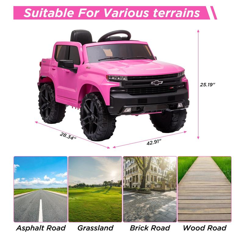🚗Realistic Chevrolet Silverado Design--Our realistic-looking replica design Chevry car can brings the ultimate happiness for rides! Officially licensed Chevrolet Silverado Trail Boss equiped with bright LED lights,control pedal,realistic engine sound and horn, rechargable battery,spring suspension wheels, offers an authentic experience.