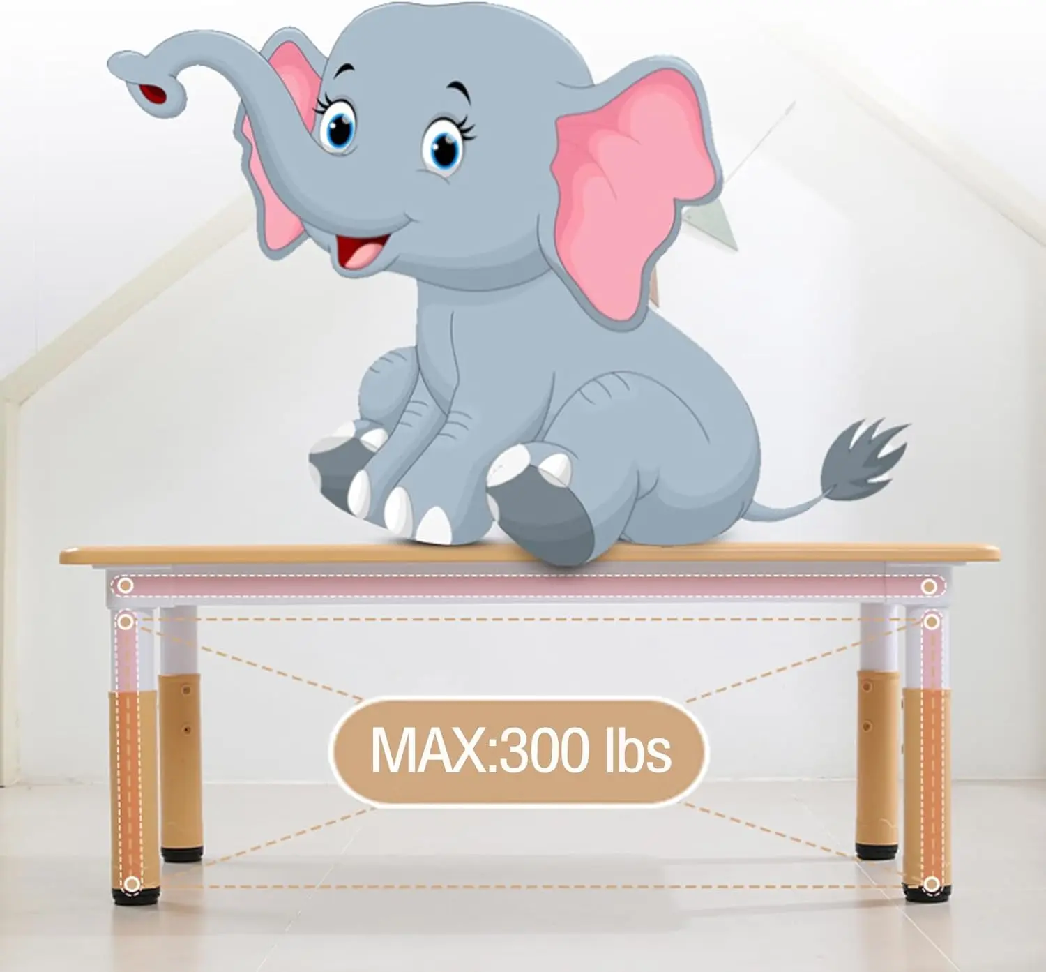 【Height Adjustable】:Both table and chair can adjust the height,The table to adjust from 18.9”-23.6”, 3 level for chairs to adjust from 10.6”-12.2”, and table weight capacity up to 300lbs,and the weight of the chair is 200LB.Both the table and chair are easy to assemble.Follow the instruction book having both printed directions and diagrams.