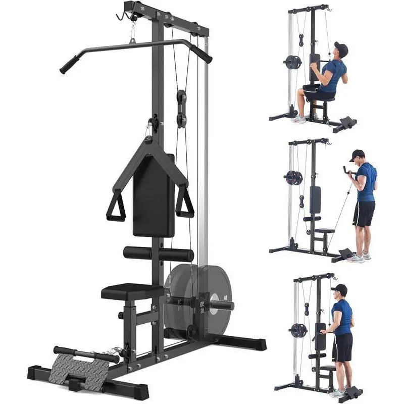 LAT Pulldown Machine, Multi-Functional Cable Machine with High and Low Pulley Station, Row Cable Machine Home Gym with Leg Support, Tricep Workout Equipment