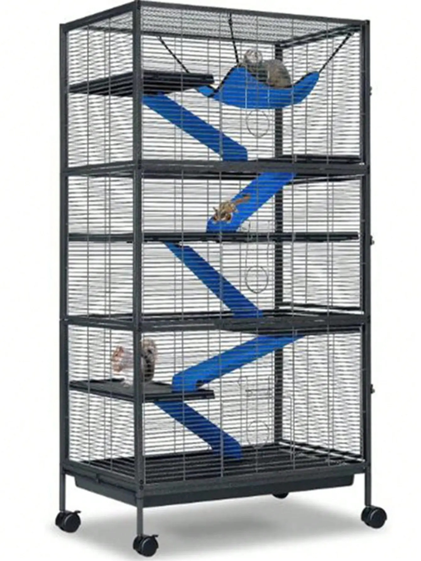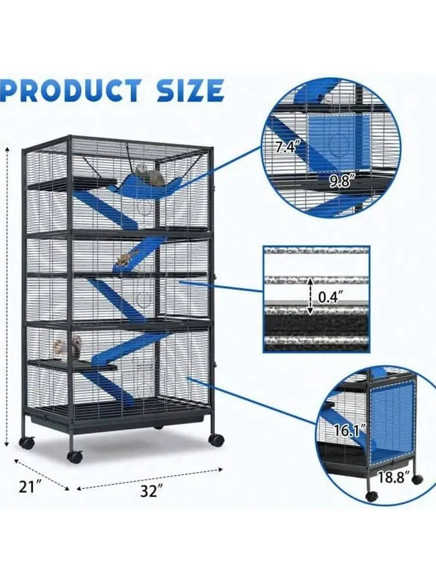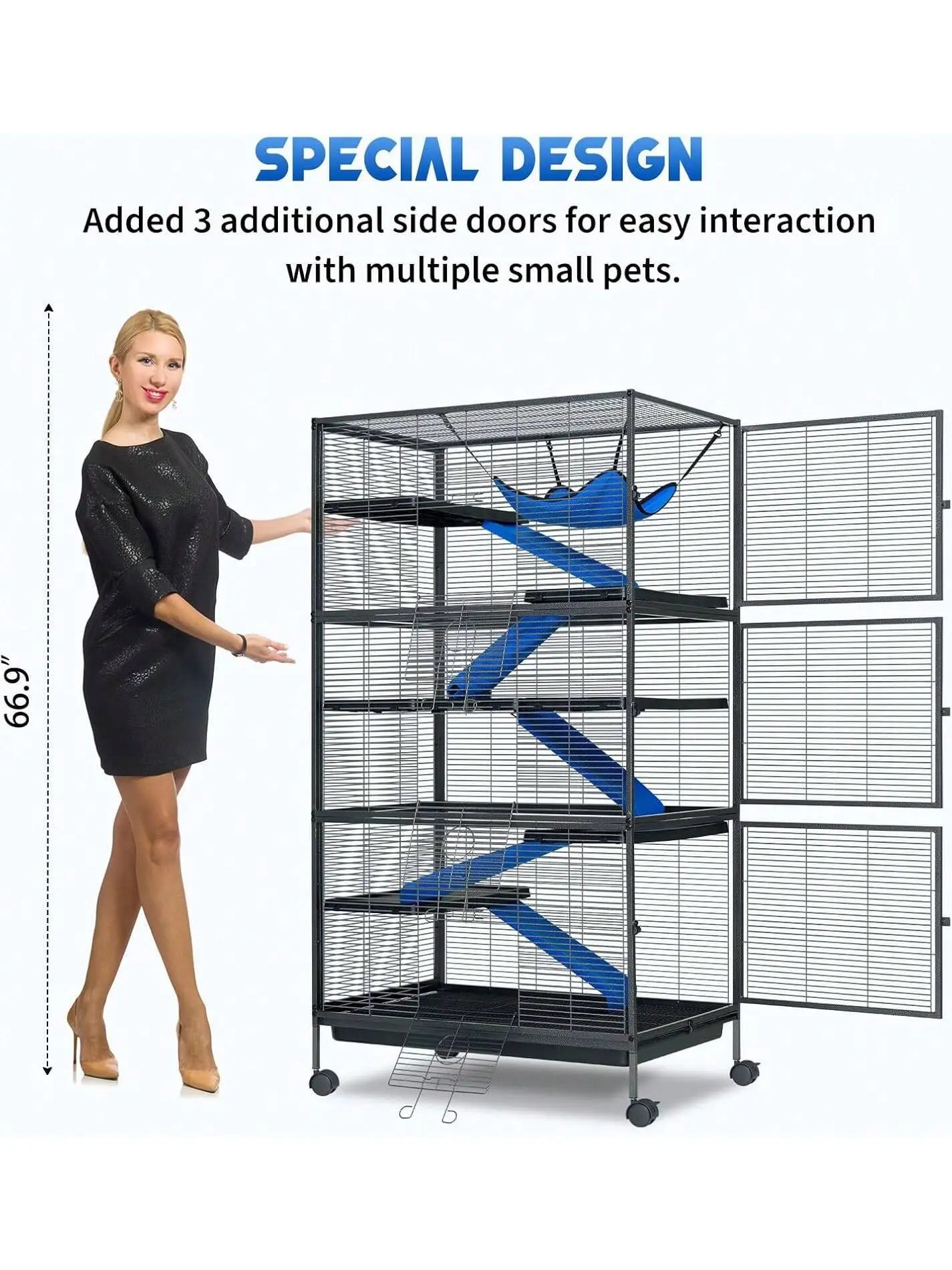5. Metal Small Animal Cage 6-Tier Ferret Sugar Glider Cage For Chinchillas/Guinea Pig/Rabbit/Large Hamste Rolling Critter Nation Cage With Flannel Ramps, Removable Tray,6 Doors Easy Clean Metal Mink Cage Suitable For Hamsters,