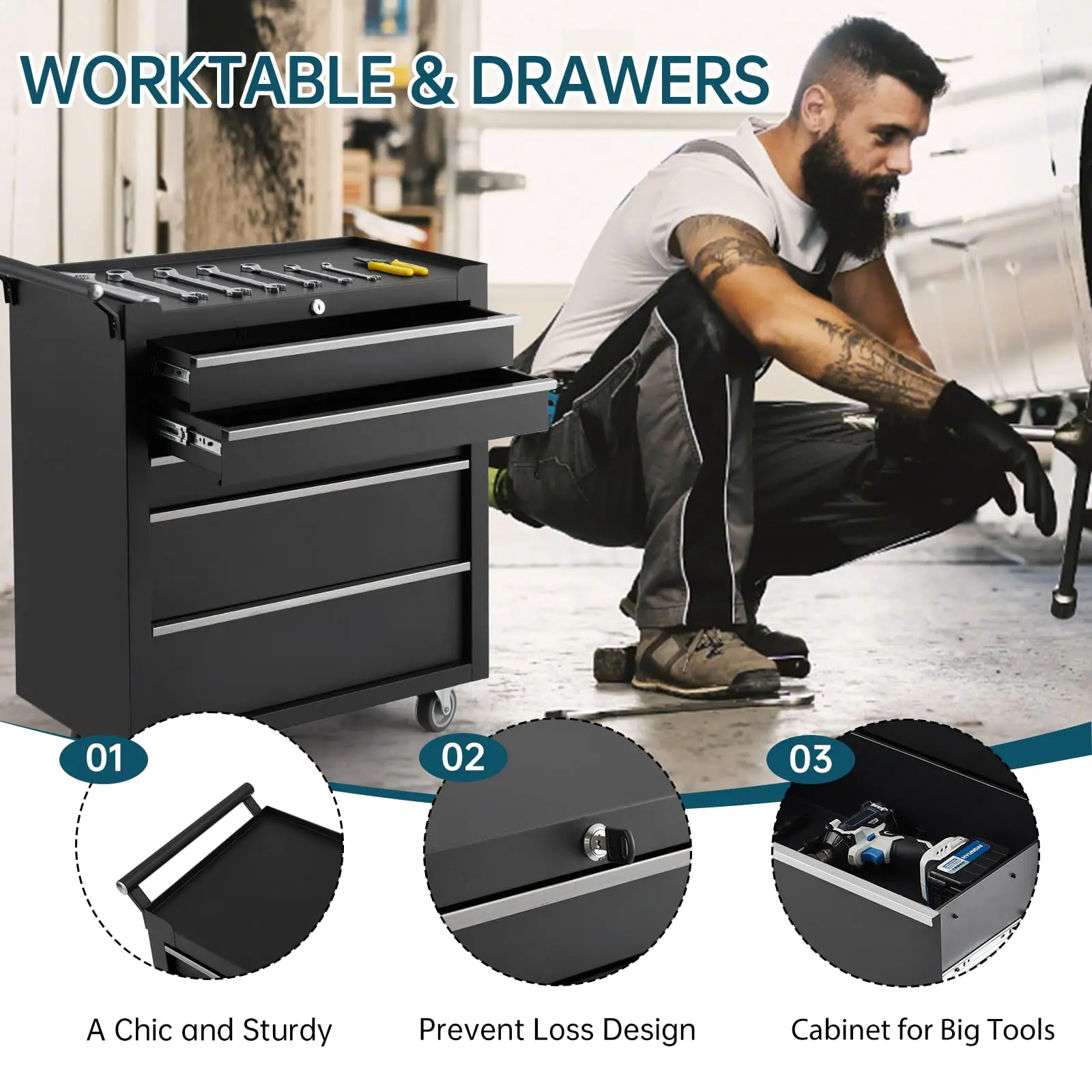 【Intelligent Organization System】Transform workflow efficiency with a vertically optimized storage design featuring multiple depth-calibrated compartments. The reinforced work surface serves as an instant project station for repairs or assembly tasks. Thoughtful compartmentalization accommodates everything from bulky power tools to miniature hardware, establishing intuitive access that eliminates frustrating searches for misplaced items.