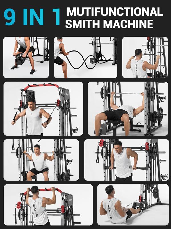 【Dual Pulley System for Versatile Training】Built with independent dual pulleys, this Smith Machine allows smooth resistance training for multiple exercises. Perfect for working out solo or training with family and friends, offering gym-level functionality at home.