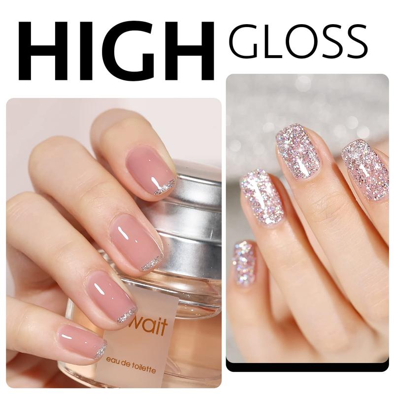 GLOSSY & NO CHIP: Apply a thin layer of no wipe top coat for shiny glossy finish. Cure with UV light for 60s to dry.