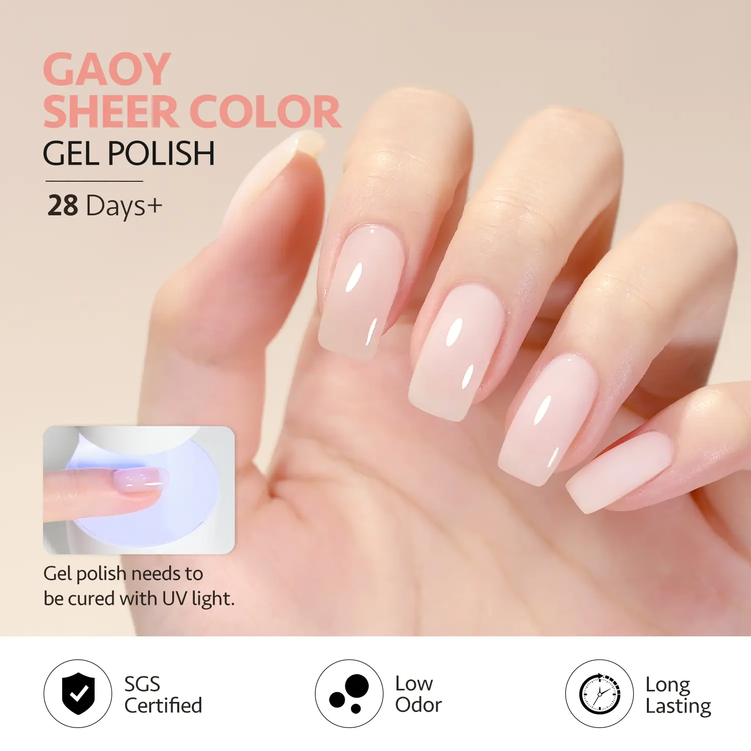 Sheer Gel Polish: Apply several layers to build up the color from clear translucent to solid opaque. Package Includes: 6 gel polish colors of 0.22 fl.oz (6.5ml) each. Basic gel nail set to enjoy the nail art from the comfort of your own home! Cure Needed: Cure under UV LED nail lamp for 60s to a complete dry. Long-Lasting: Up to 4 weeks if properly applied base coat & top coat. Tips: Buff your nail bed lightly before applying to prevent early peeling off.