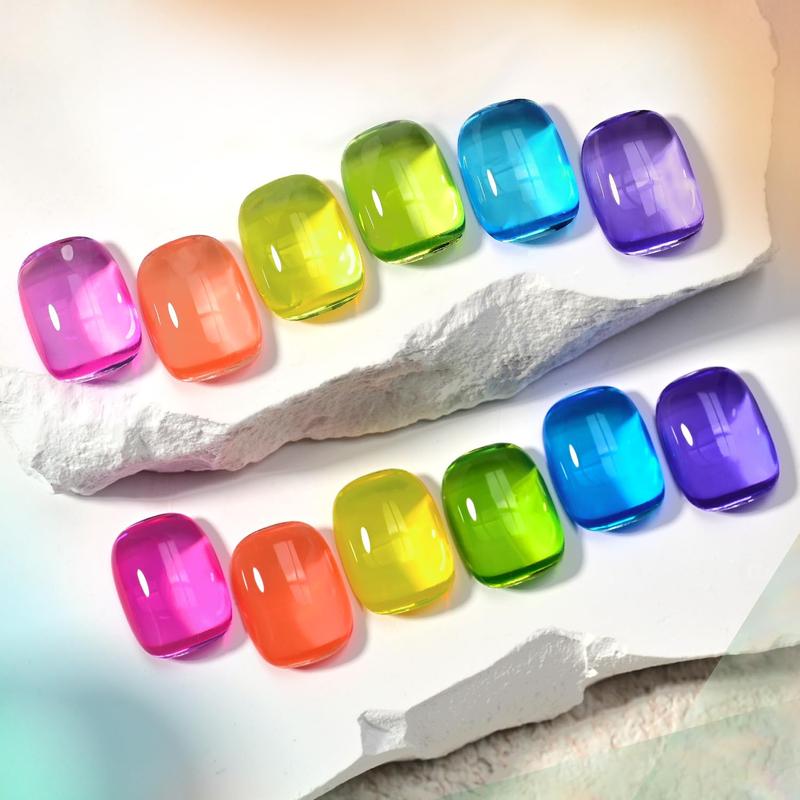 4. GAOY Coloured Glass Jelly Gel Nail Polish Set, 6 Transparent Colors Sheer Neon Green Pink Soak Off UV Light Cure Gel Polish Kit for Salon and Nail Art DIY at Home
