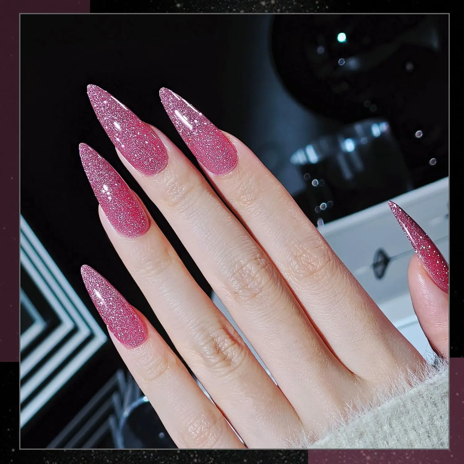 Reflective Glitter: Apply glossy gel top coat for gorgeous shimmery finish. Heat up in winter to reduce thickness.